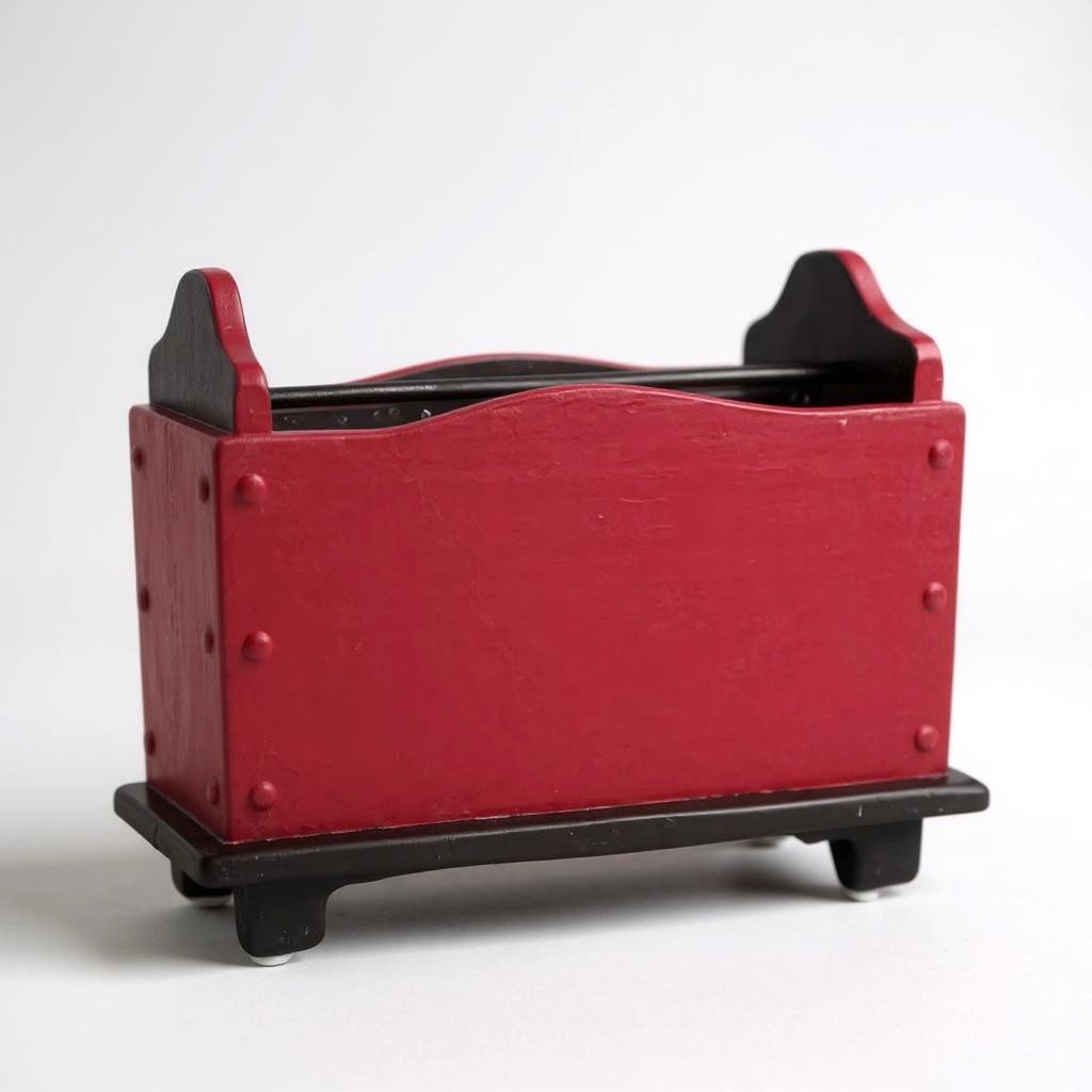 Organize your magazines and books, with this rustic barn red wooden rack.