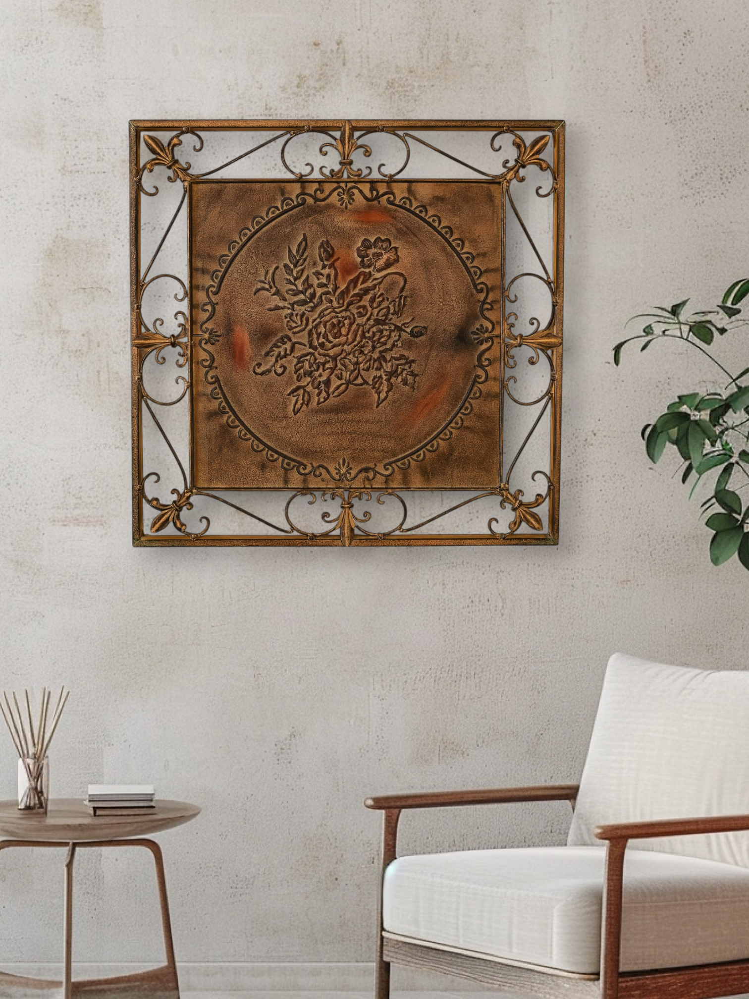 Make your walls stand out with this iron wall art piece featuring intricate design and rustic texture.