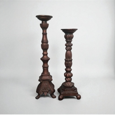 - Measurements: Small candle holder, , base 5.25” L & W | 17” H | top base 4”, Large candle holder, base 5.25” L & W | 20” H | top base 4”