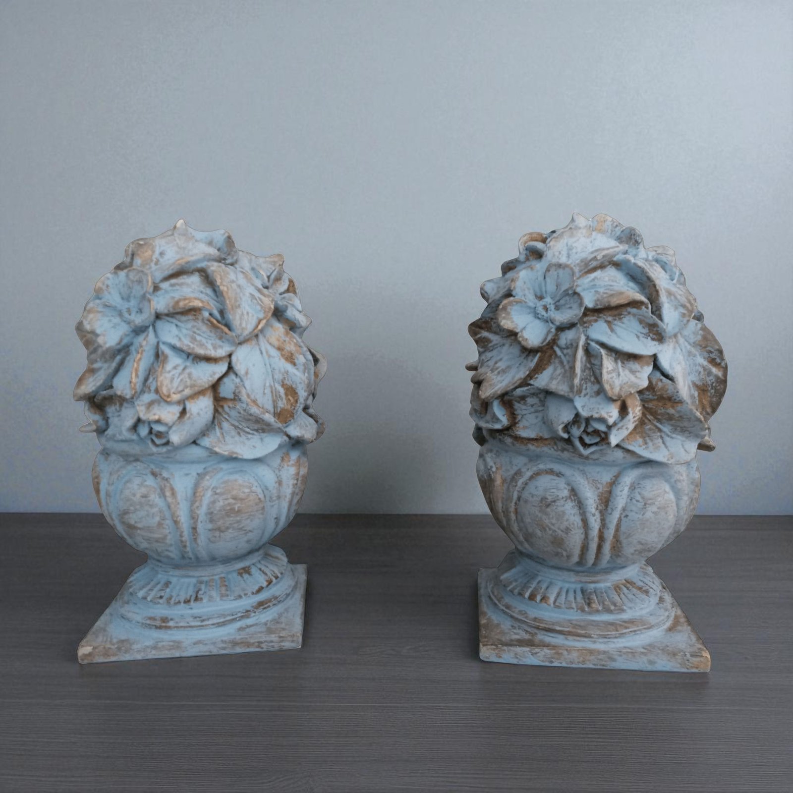 Bring vintage elegance to your shelves with this pair of distressed blue patina bookends.