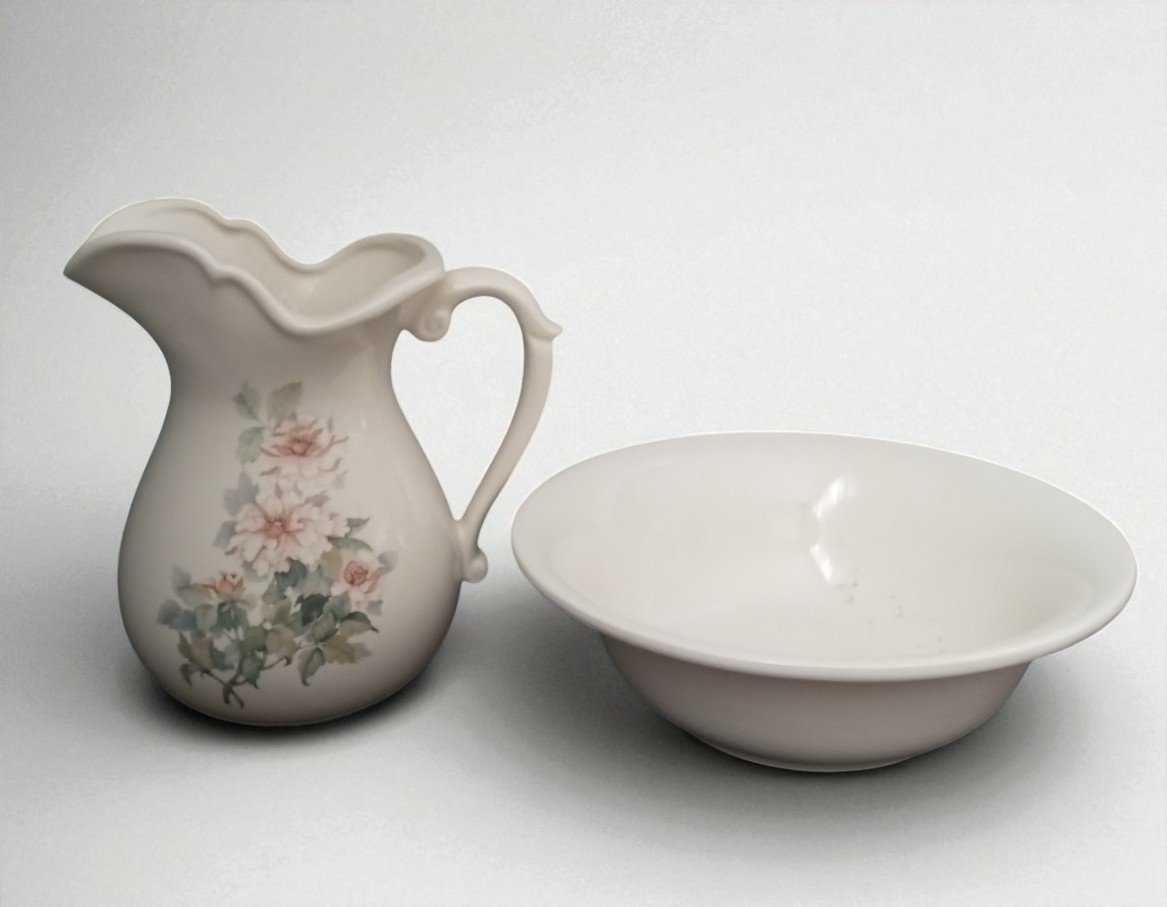 Imagine adding a touch of vintage charm to your space with this delightful wash basin and pitcher set.
